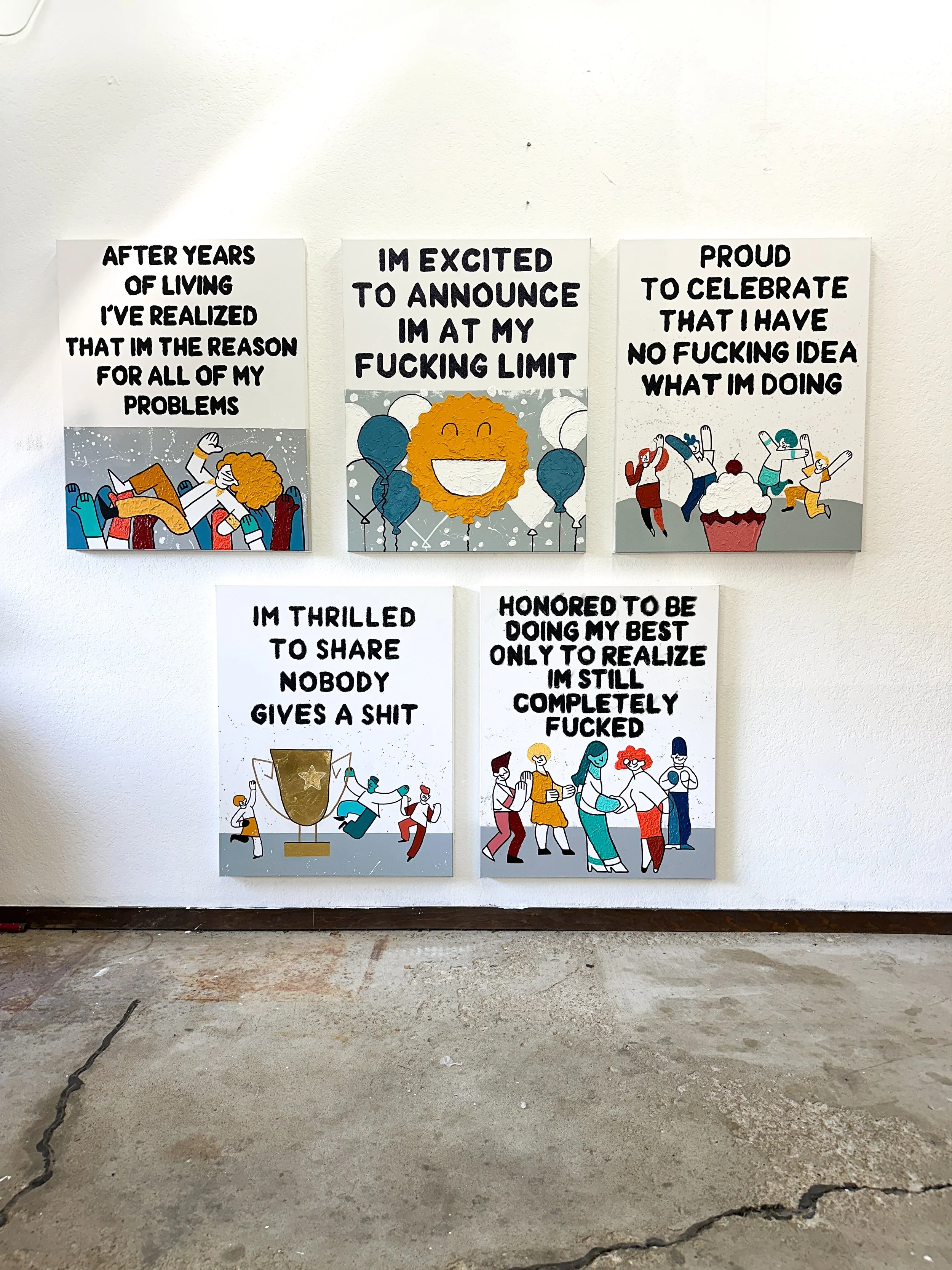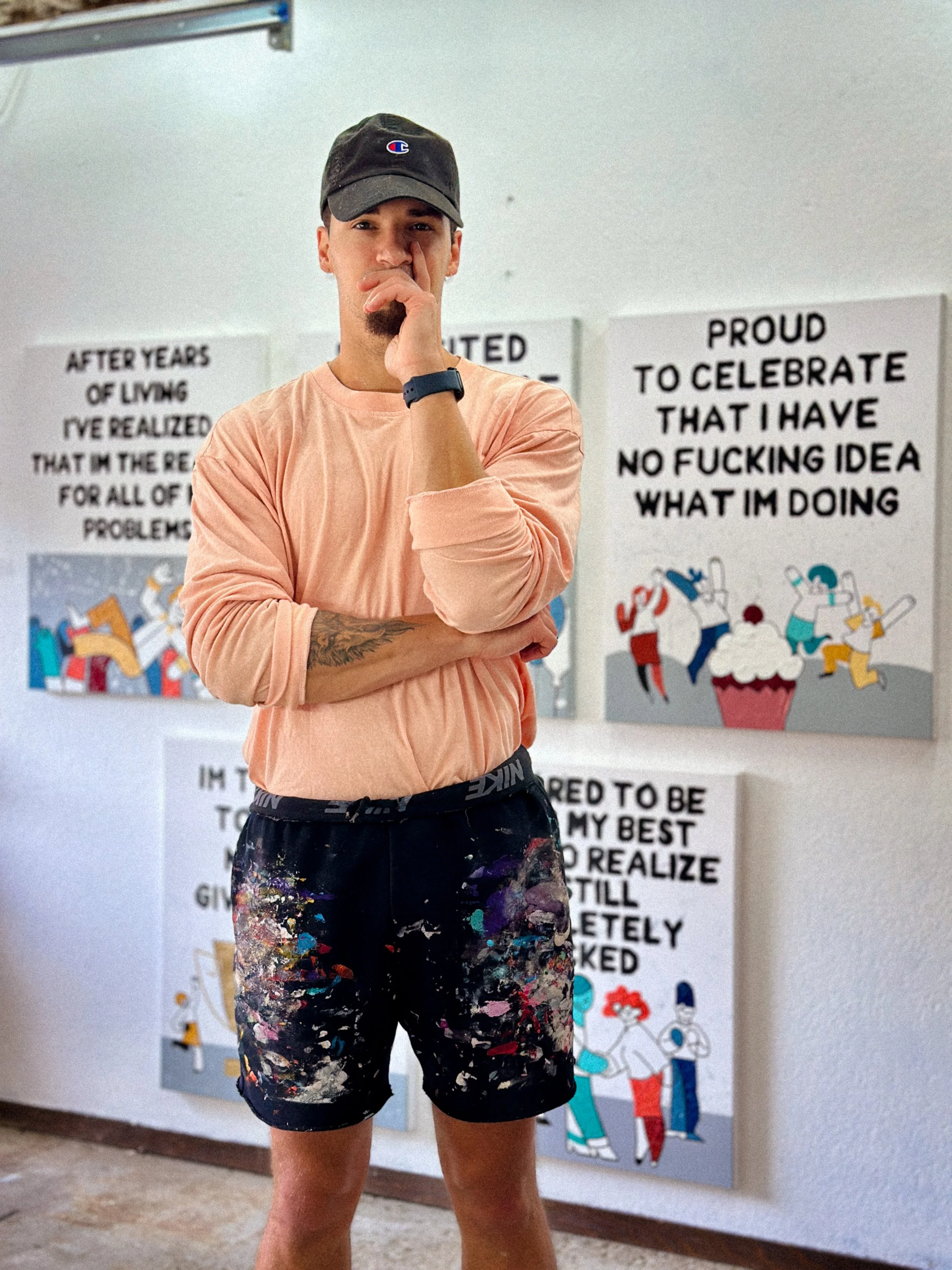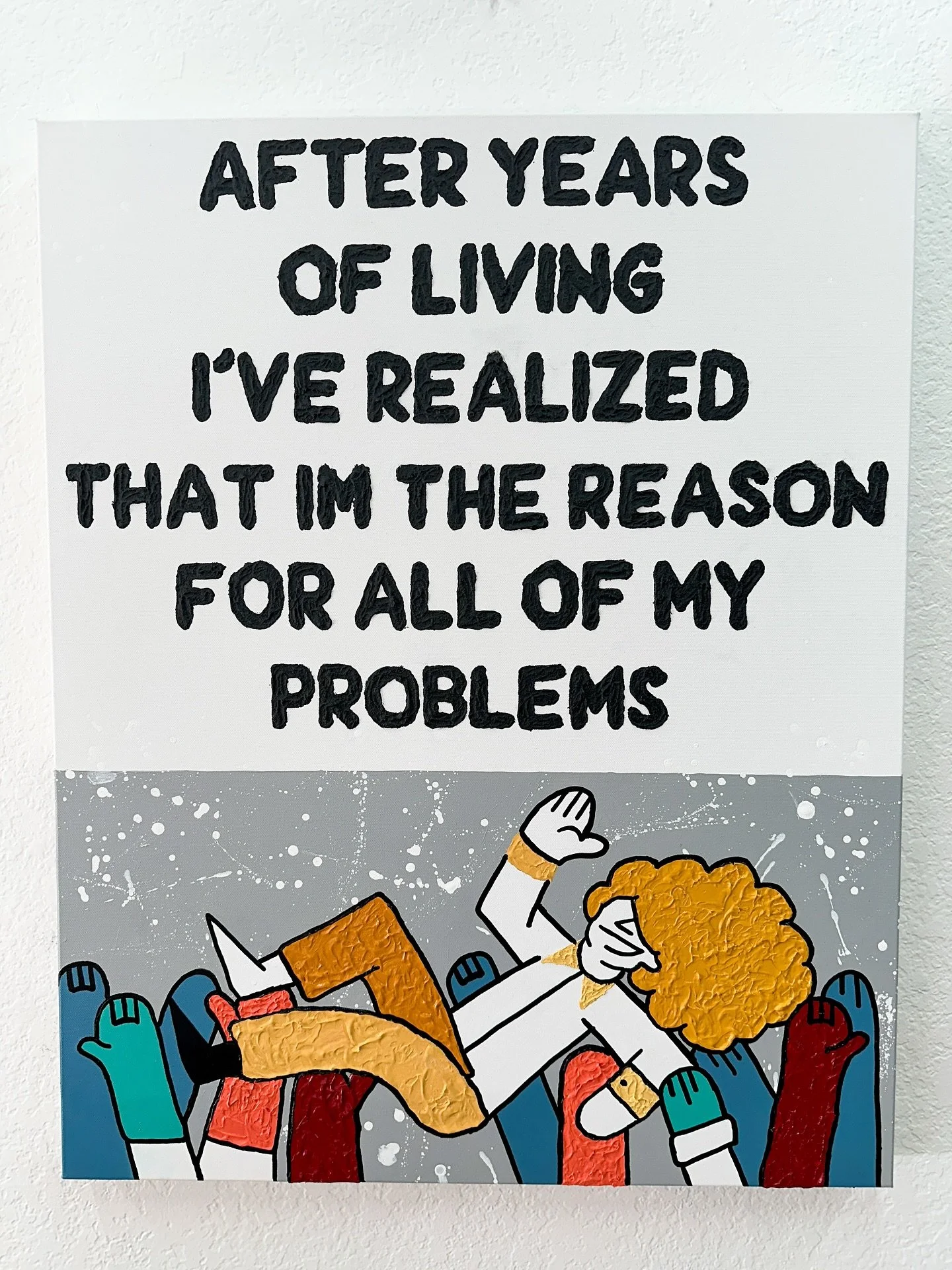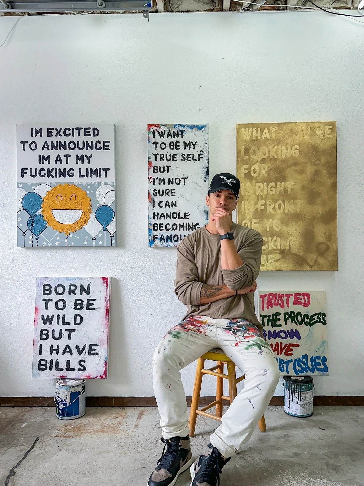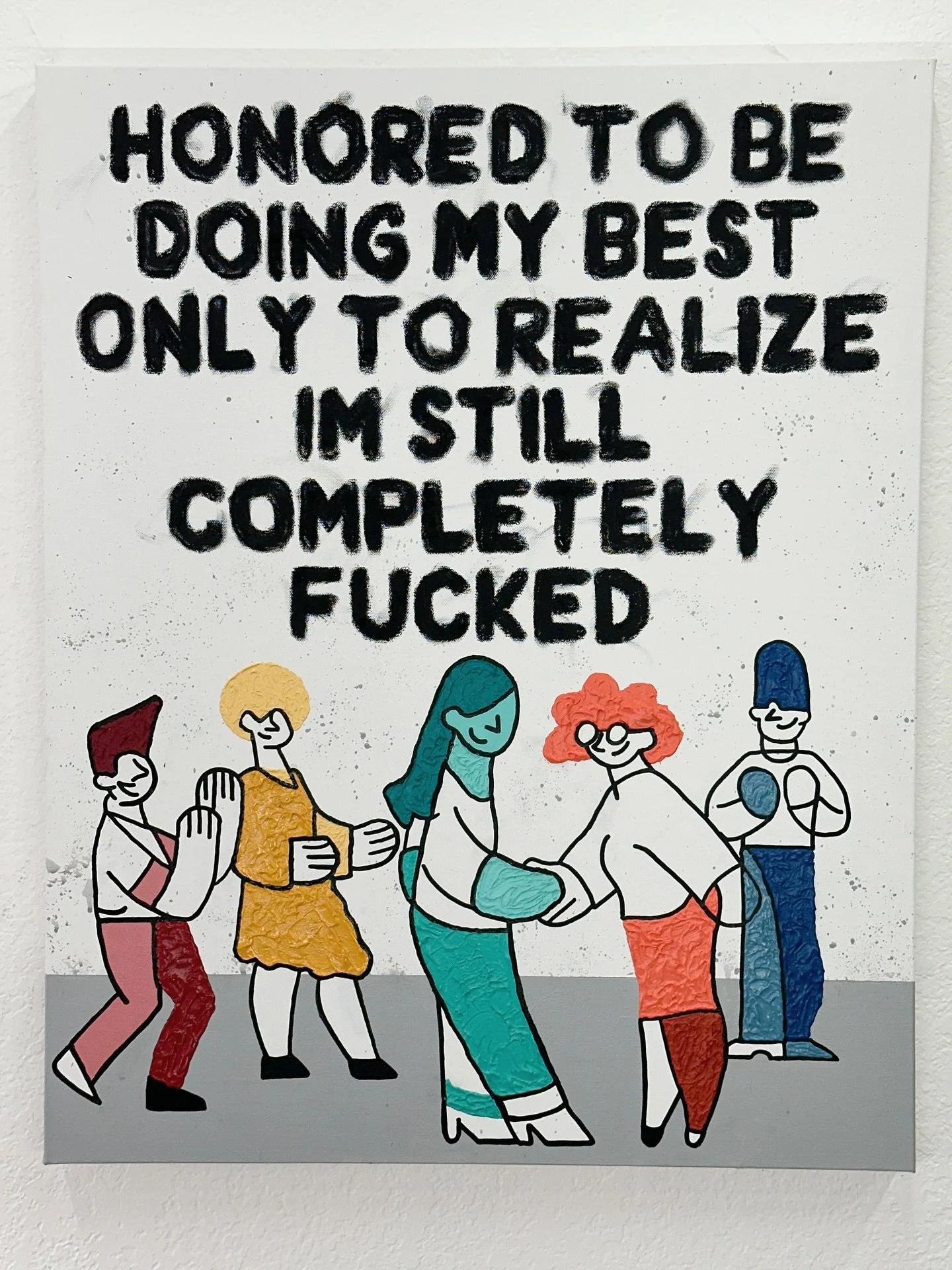 Known for his edgy, irreverent take on everyday life, Braxton debuted a fresh collection of humorous, thought-provoking pieces that playfully poke fun at failure, insecurity, and the absurdity of being human. Each artwork served as a visual punchline, inviting viewers to laugh at life’s chaos and not take themselves too seriously.